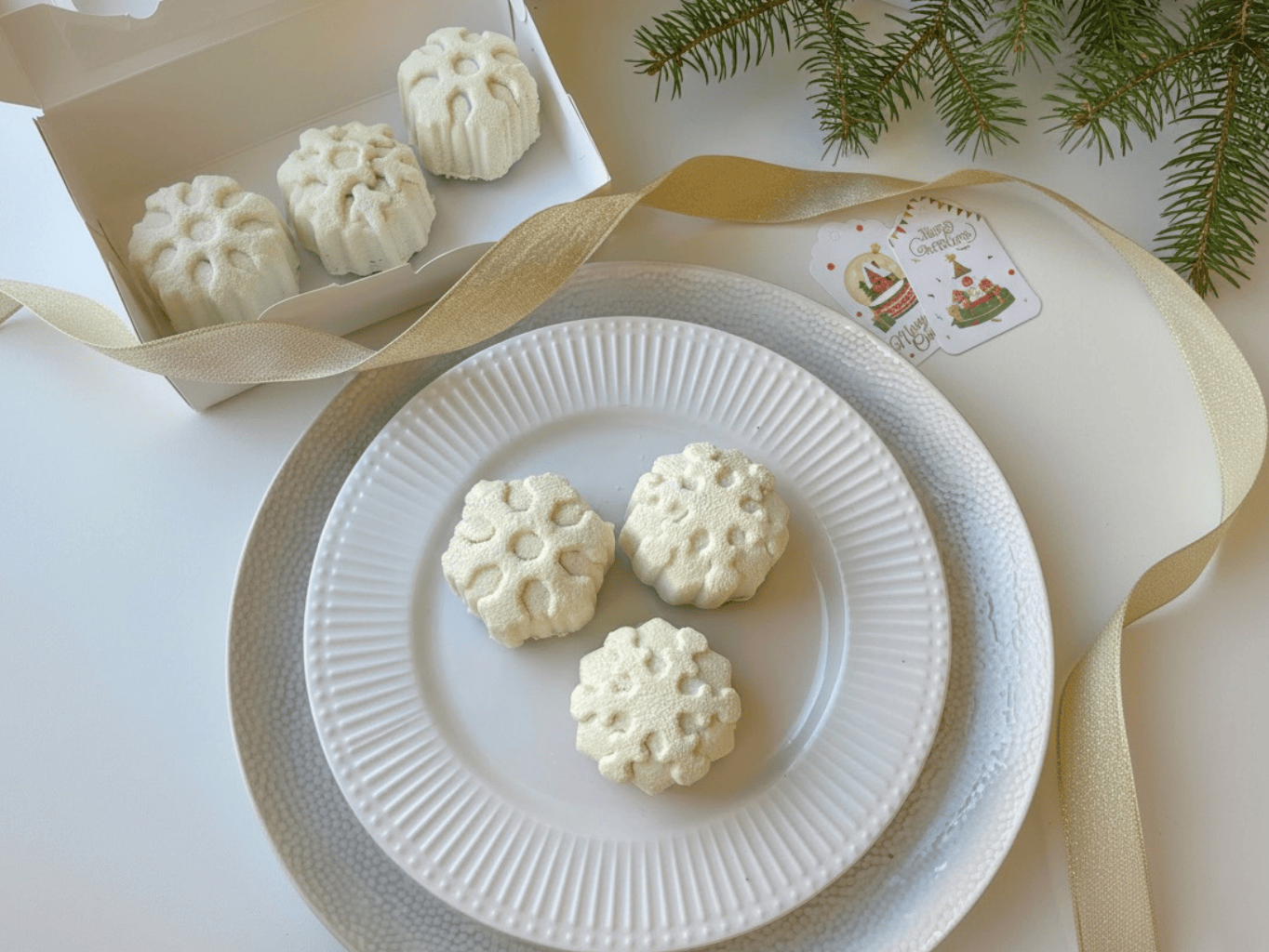 Velvet sprej dodá dezertu luxusní sametový vzhled. Pokud nemáte, můžete povrch posypat jemně nastrouhaným kokosem nebo přelít bílou čokoládovou polevou. A servírování? Na zrcadlový tác nebo břidlici – a máte hotové vánoční nebo slavnostní mini dortíky.