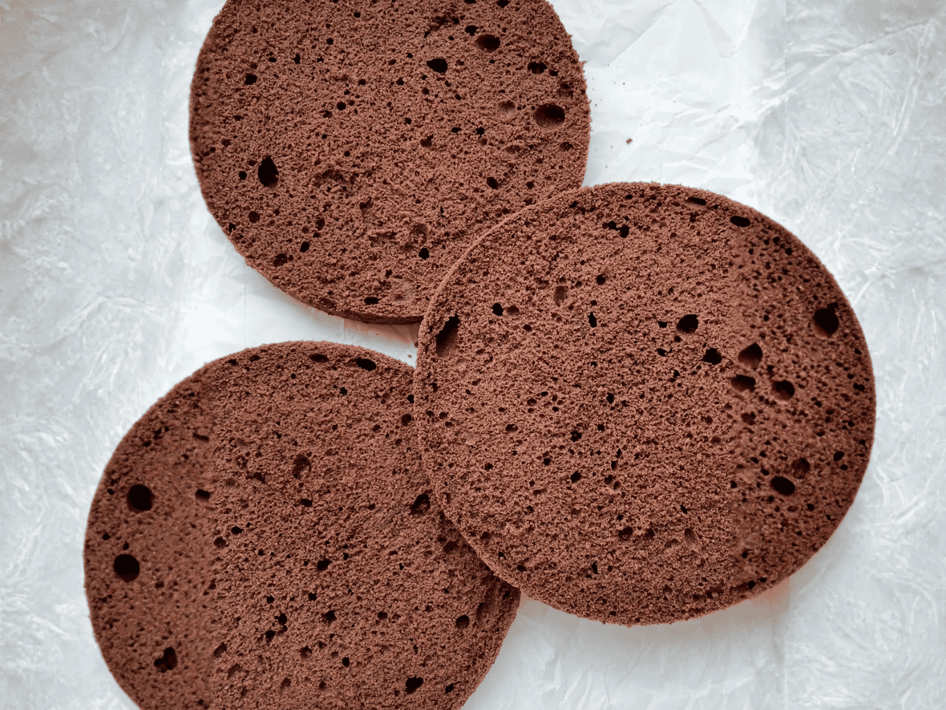Kakaový korpus se krájí nejlíp, když mu dáte čas. Upečte ho den předem, zabalte do fólie a druhý den ho prokrojíte na 3 krásné vrstvy bez drobení a bez toho, že by se vám střed začal trhat. A pokud chcete vrstvy opravdu rovné, pomůže dlouhý zubatý nůž a klidná ruka (ano, to je taky pomůcka).
