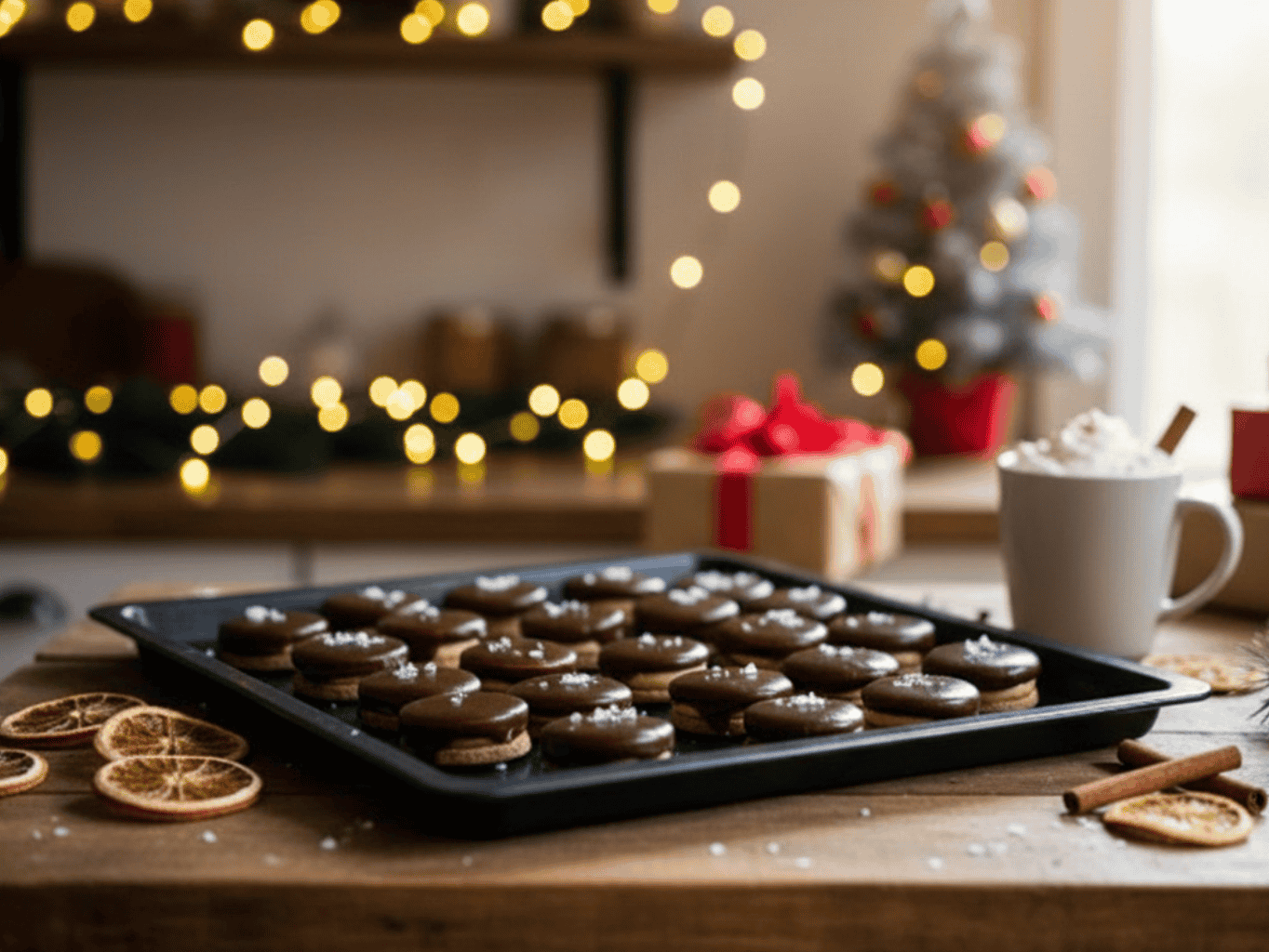 Cukroví skladujte v uzavíratelné dóze na chladném místě – vydrží bez problému 2 týdny a chutě se krásně propojí. Pokud chcete mít výsledek „na efekt“, posypte ještě před ztuhnutím čokolády jemnou mořskou solí nebo zlatým sypáním. A pokud zbyde karamel? Můžete ho skladovat ve skleničce v lednici. Skvěle se hodí na palačinky nebo na zmrzlinu.