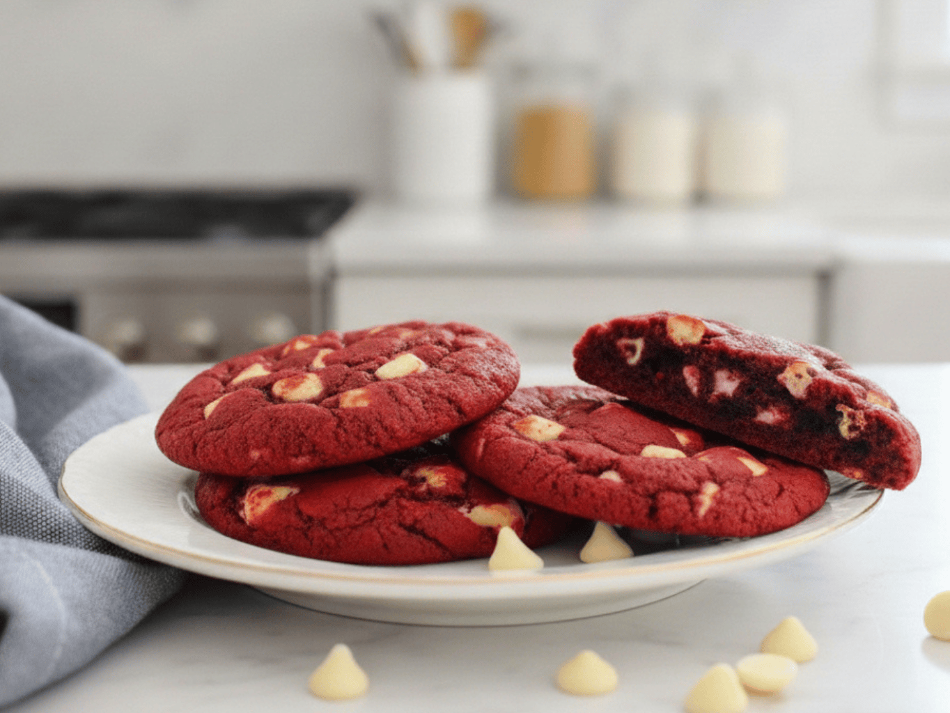 Chcete menší sušenky (třeba do krabiček jako jedlý valentýnský dárek)? Udělejte půlky a pečte přibližně 9 minut. Nejlepší jsou v den upečení, ale když je dáte na 15–30 vteřin do mikrovlnky (nebo na pár minut do trouby), znovu změknou a budou „fresh“. A pokud milujete red velvet recepty, určitě vyzkoušejte i náš red velvet dort.