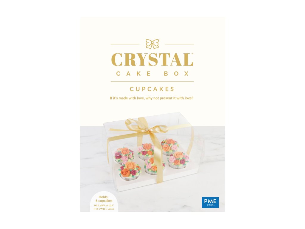 Elegantně prezentujte své cupcakes, muffiny, mini dortíky v této nádherné křišťálové dortové krabičce od PME. Krabice také obsahuje zlatou saténovou stuhu, která doplňuje krabici a dodává nádech luxusu.