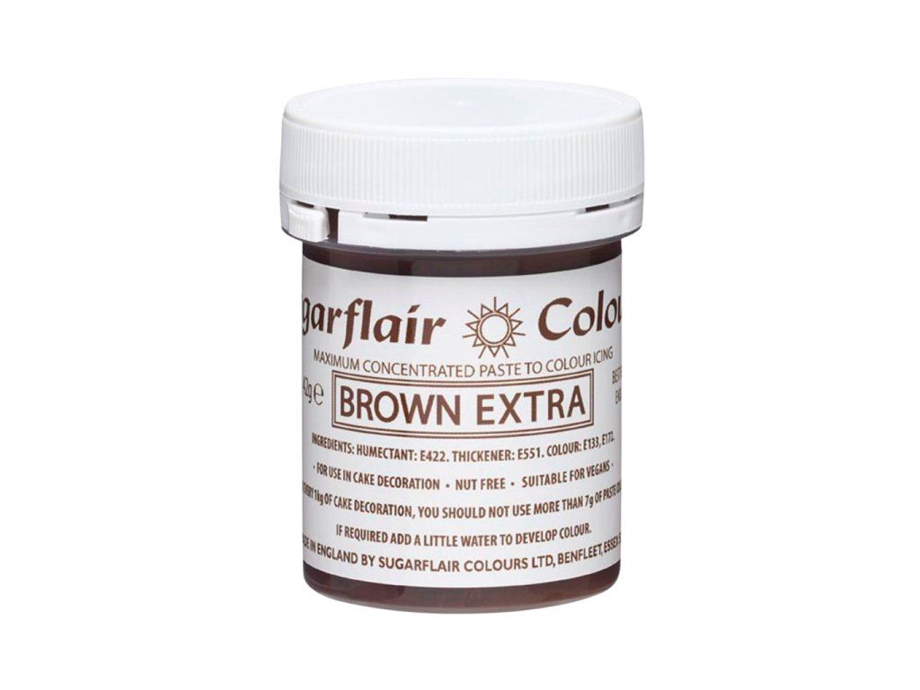 Brown Extra je vysoce koncentrovaná potravinářská gelová barva od značky Sugarflair, které postačí opravdu jen malé množství k dosažení sytě hnědého odstínu.