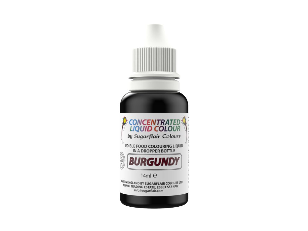 Tekutá potravinářská barva ve vínovém (burgundy) odstínu určená pro barvení polev, krémů, cukrářských hmot, směsí či kresbu. Díky lahvičce s kapátkem umožňuje přesné dávkování a plnou kontrolu nad intenzitou barvy. Vhodná pro profesionální i domácí použití.