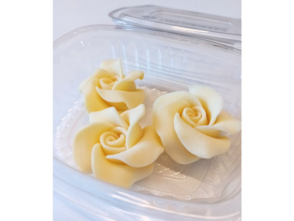 Rozměr 4,5 × 3 cm, tvar růže, barva perleťově bílá, dekorace z čokolády, určeno pro zdobení dortů a dezertů, balení: 3 ks.
