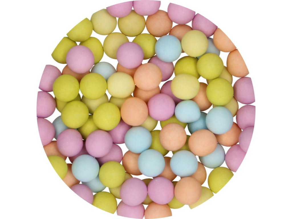 Čokoládové perly, průměr cca 10 mm, balení 70 g, mix barev, vhodné na zdobení dortů, cupcaků, dezertů i zmrzliny.