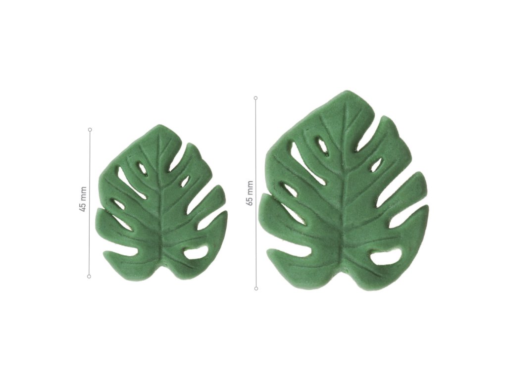 Výrazná cukrová dekorace inspirovaná tropickou rostlinou monstera je ideální volbou pro moderní dorty, zákusky i slavnostní dezerty. Díky realistickému tvaru a syté zelené barvě listů vytváří silný vizuální akcent a umožňuje rychlé a efektivní dozdobení bez nutnosti další modelace. Hodí se jak pro profesionální cukrářské provozy, tak pro náročné domácí pečení.