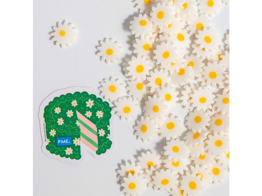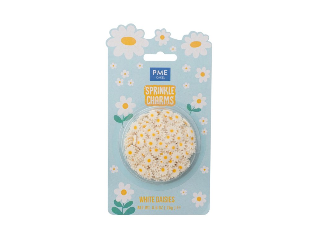 Dekorativní cukrové sypání ve tvaru bílých sedmikrásek, hmotnost 25 g. Určeno pro zdobení dortů, cupcakes a dezertů.