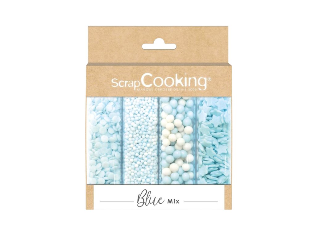 Mix cukrového sypání, modré konfety, modrobílé nonpareils, modrobílé perličky a modré hvězdičky, balení 64 g, vhodné na zdobení dortů, sušenek, cupcaků či donutů.