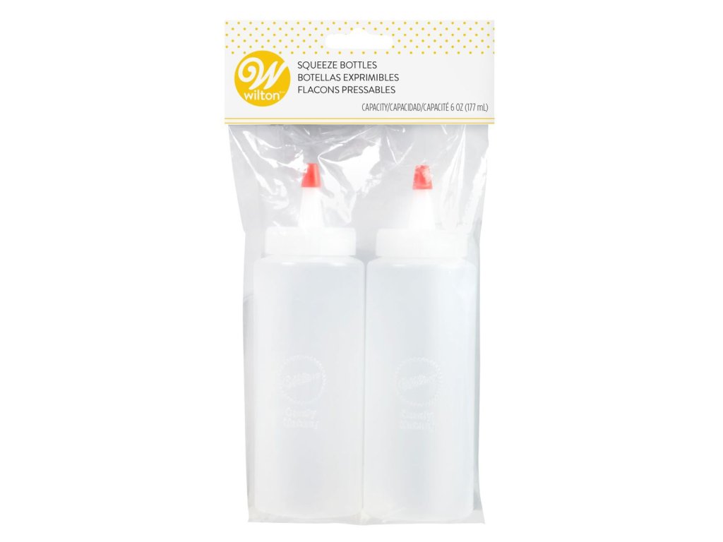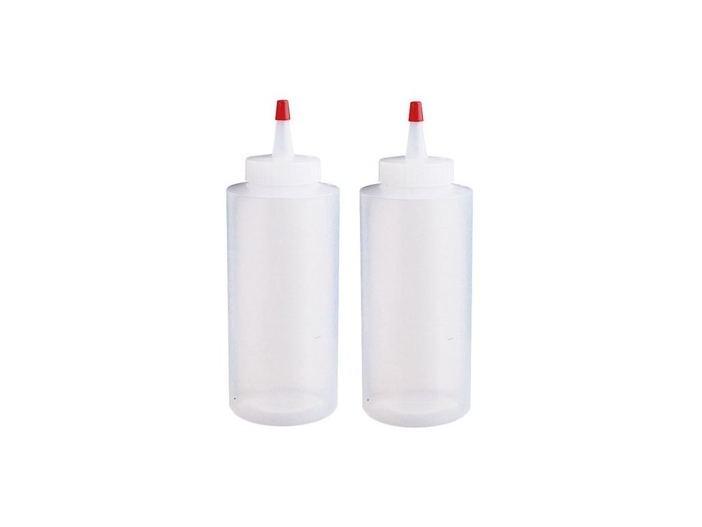 Sada 2 stlačitelných víceúčelových lahví, obě se šroubovacím víčkem a ochranným uzávěrem zabraňujícím úniku.