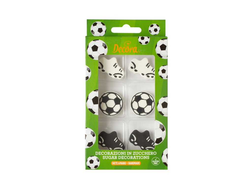 Decora – cukrové ozdoby fotbal 6 ks jsou malé kulaté dekorace s fotbalovými motivy, které okamžitě promění každý dort, cupcake či dezert v zábavné sportovní dílo. Jedlé dekorace z cukrové hmoty jsou lehké, snadno se aplikují a přidají pečeným i chlazeným dezertům originální vzhled.