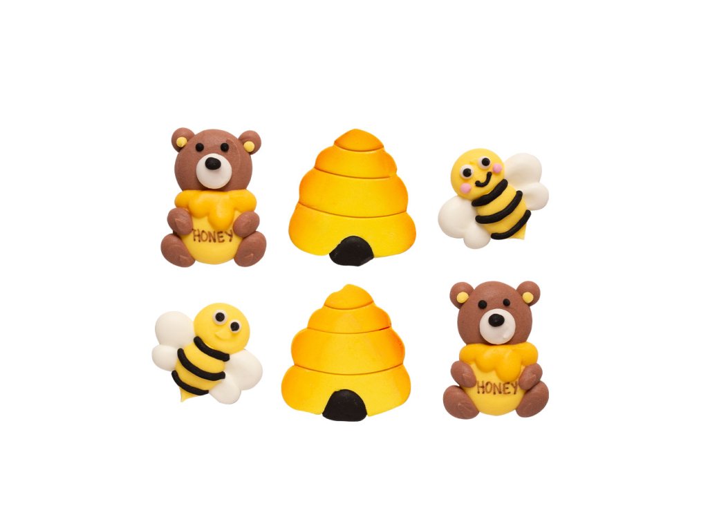 Ručně vyráběné cukrové ozdoby, medový motiv, 6 ks, rozměr 2,6 - 5 cm × 4 cm, přírodní barviva, křehké – skladujte v suchu a chladu.