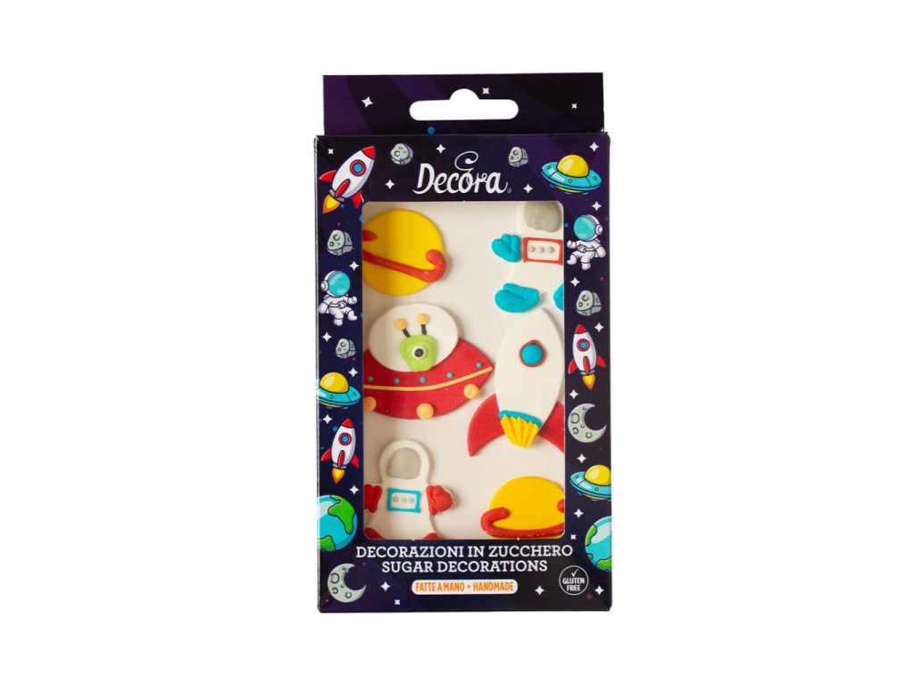 Cukrové ozdoby od značky Decora jsou ideální pro dorty, cupcaky, sušenky i drobné sladké dezerty a díky motivu vesmíru skvěle doplní tematické oslavy nebo dětské narozeniny. Každý kus je ručně vyráběný a připravený k okamžitému použití, takže zdobení je rychlé, jednoduché a přitom velmi efektivní.