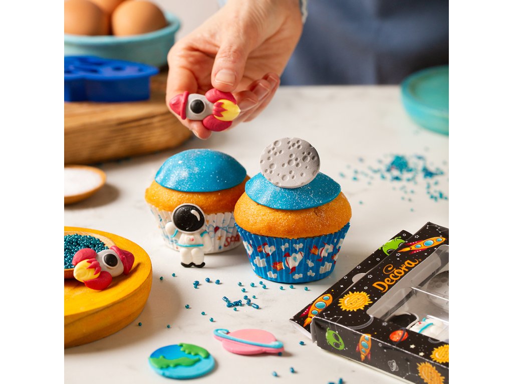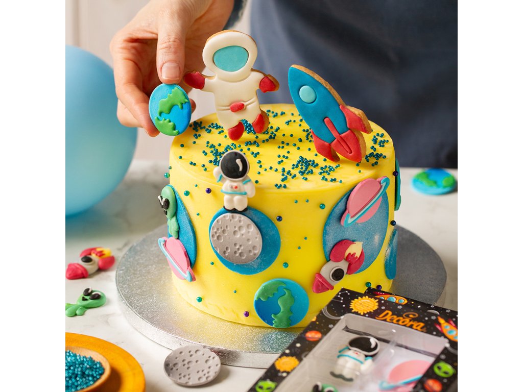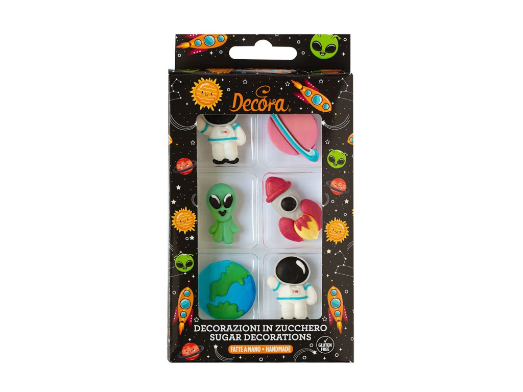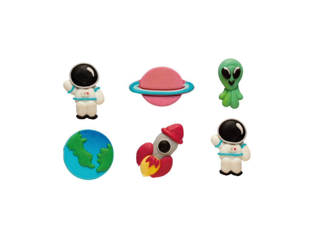 Ručně vyráběné cukrové ozdoby, vesmírný motiv, 6 ks, rozměry 2,6 - 5 cm × 4 cm, přírodní barviva, křehké – skladujte v suchu a chladu.