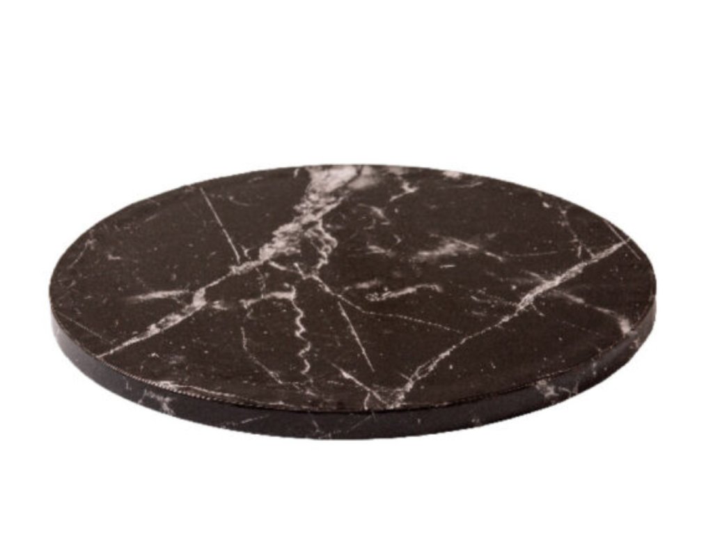 Dortová podložka mramor O 25 cm, výška 1,2 mm, černý mramorový vzhled, karton s potravinářskou fólií, nepromastitelná, jednorázová podložka pod dort, 1 ks.