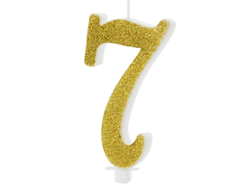 Dortová svíčka se zlatým třpytem, číslo – 7