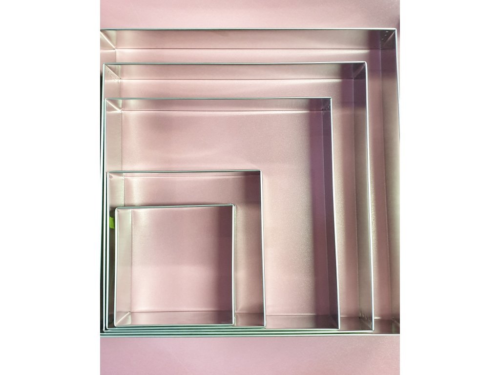 Čtvercový dortový ráfek je ručně vyrobený z pocínovaného plechu a určený pro krátkodobý styk s potravinami. Jedná se o formu bez dna, která se pokládá přímo na plech vyložený pečicím papírem. Díky kvalitnímu zpracování se hodí pro pečení korpusů nebo na vrstvení krémových dortů, kde je potřeba udržet přesný tvar a rovnoměrnou výšku.