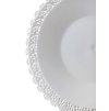 Průměr tácu 30 cm, bílý, výška 1,5 cm, plocha k použití 20 cm, velikost krajky 1,6 cm, plast vhodný pro kontakt s potravinami, opakované použití, 1 ks.