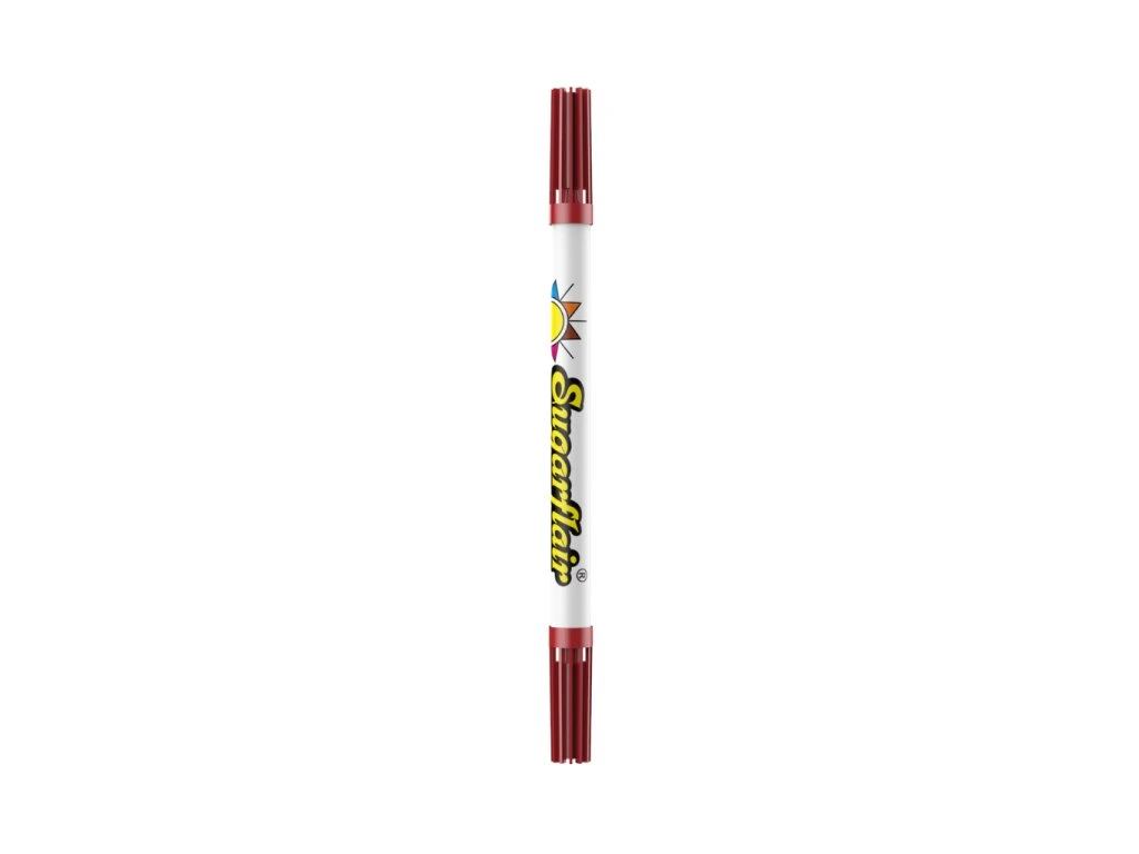 Oboustranný jedlý fix Sugarflair je praktický popisovač určený pro dekorování dortů, sušenek i cukrových ozdob. Dva hroty umožňují kreslit jemné linky i silnější tahy, a to přímo na fondán, marcipán nebo royal icing.