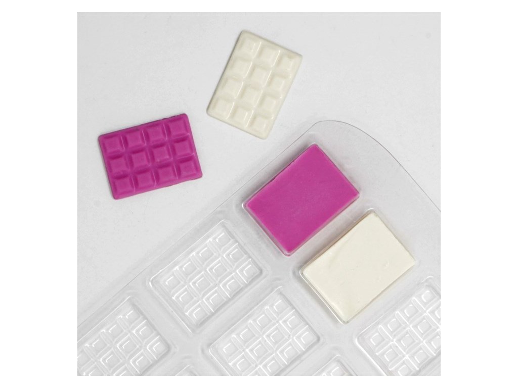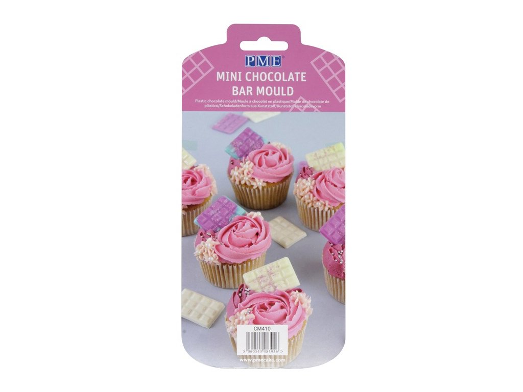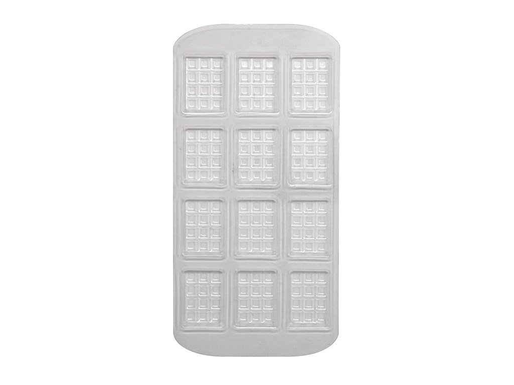 Forma na mini čokoládové tabulky, 12 ks čokolád, rozměr jedné tabulky 3,5 × 2,5 cm, materiál PET, vhodné na zdobení cupcaků nebo dortů.