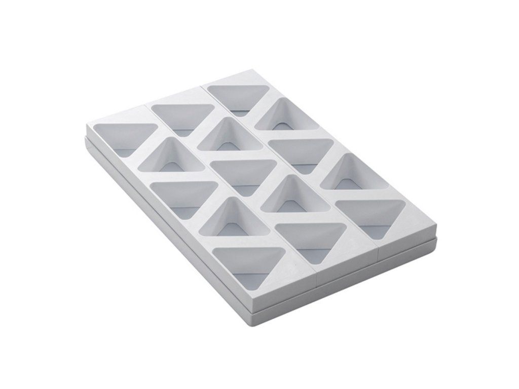 Tvar trojúhelník, rozměr formy 26 × 40 cm, kapacita 15 ks, objem jedné porce 148 ml, materiál plast, barva bílá.