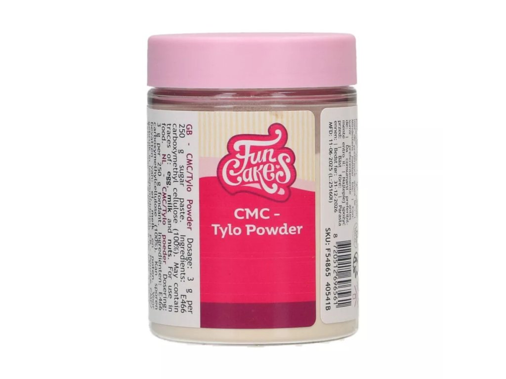 - CMC, karboxymethylcelulóza, často nazývaná prášek Tylo, je jedlá a lze ji použít v potravinách.