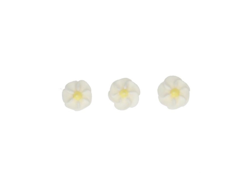 Cukrové dekorace, motiv květiny, barva bíložlutá, balení 56 ks, bez lepku, vhodné pro jarní a velikonoční dezerty, ideální na zdobení dortů, cupcaků i sušenek.