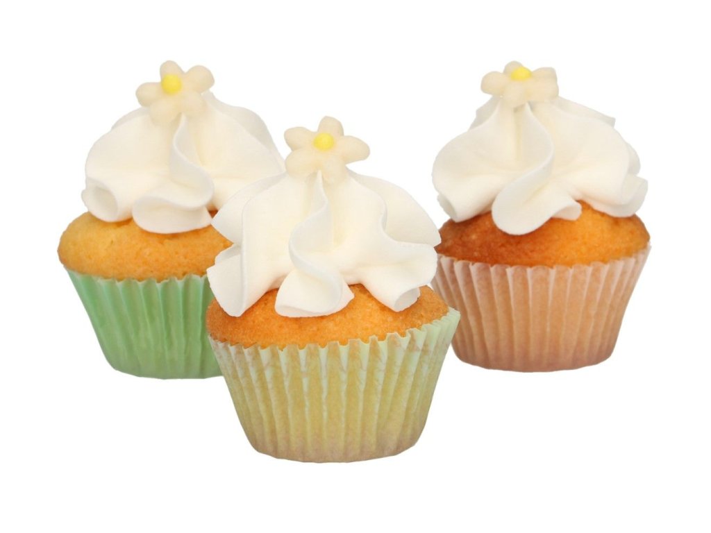 Marcipánové dekorace, motiv chryzantémy, velikost cca 1 cm, barva bíložlutá, balení 30 ks, bez lepku, vhodné pro jarní a velikonoční dezerty, ideální na zdobení dortů i cupcaků.