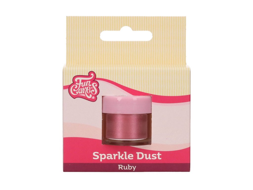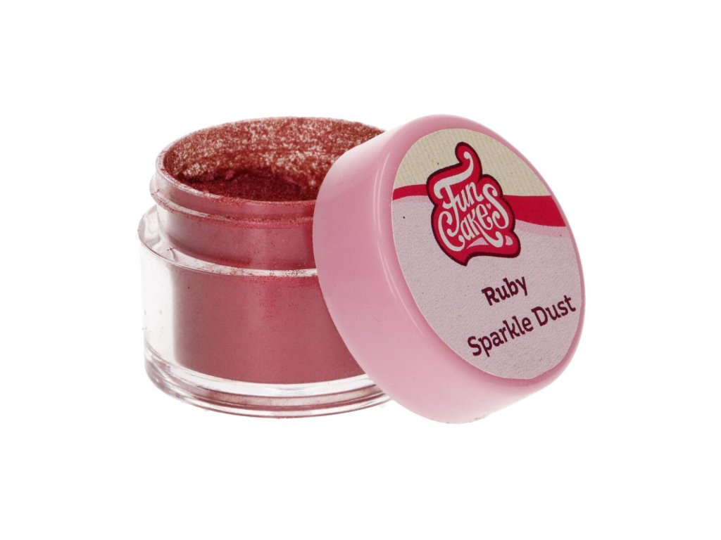Dodejte svým dortům, ozdobám z fondánu a gumové pasty nebo cukrovým květinám jemný rubínový třpyt. Jednoduše nanášejte zdobícím štětcem nebo vytvořte jedlou barvu s použitím bezbarvého lihu nebo jiného produktu na bázi alkoholu. Řada FunCakes Sparkle Dust dodá vašim dortům výjimečný vzhled a dojem. Produkty jsou dostupné v široké škále barev, 100% jedlé a snadno použitelné. Pro použití v potravinách.