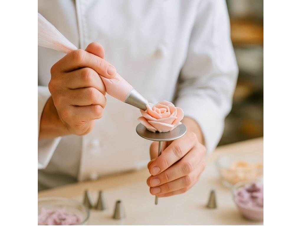 Připravte sáček s růžičkovou tryskou a krém pokojové teploty.