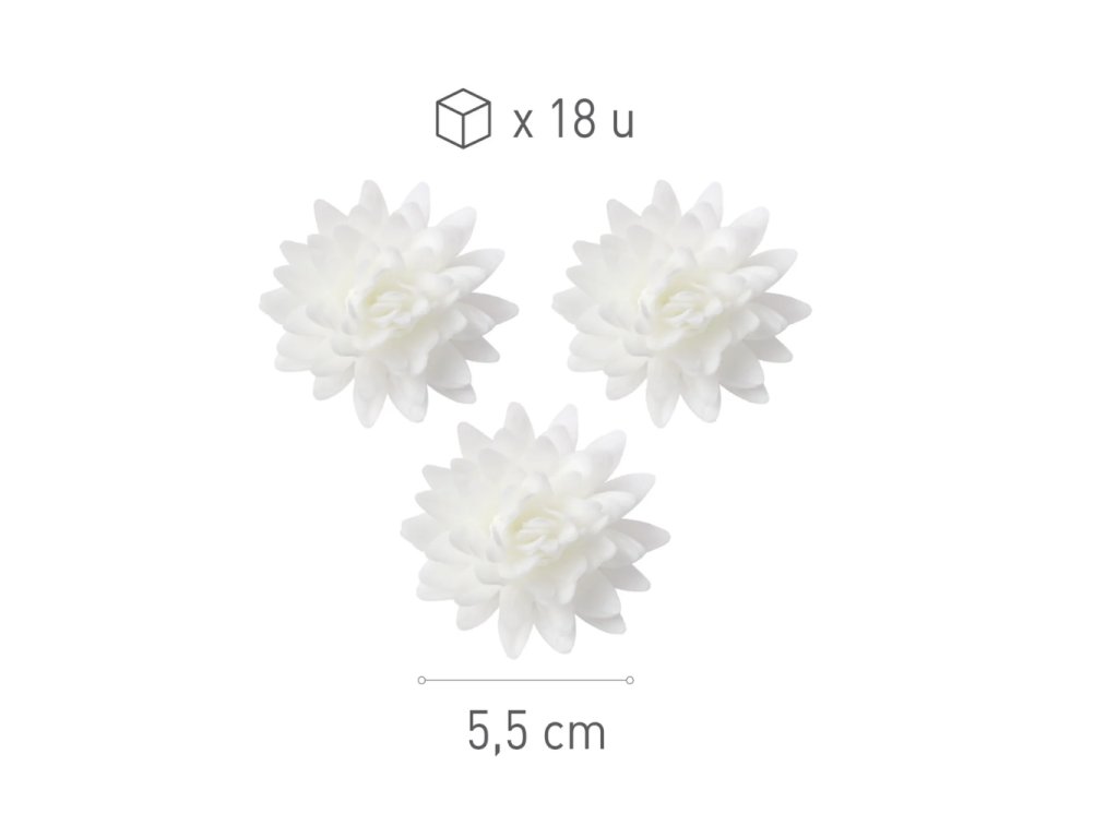 Jedlá dekorace na dort, bílé květy Dekora – 18 ks, jedlý papír, průměr 5,5 cm, hotové k použití na dorty, cupcakes a sušenky, bez lepku.