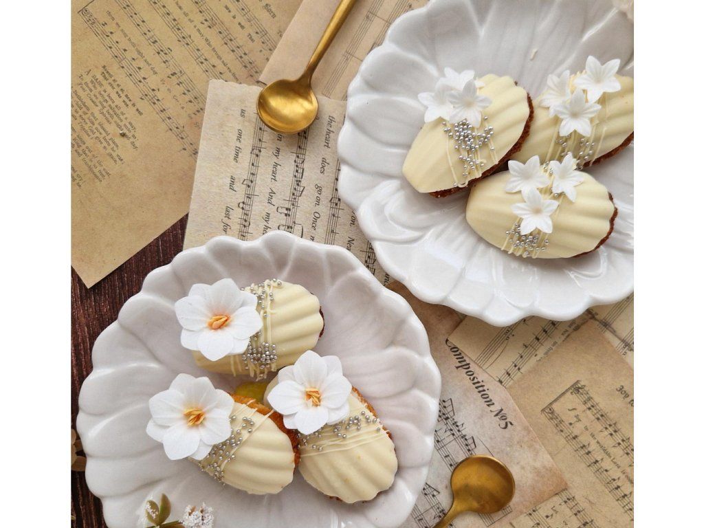 Bílé jedlé květy o průměru 2 cm představují perfektní dekoraci pro moderní i klasické dezerty. Dekorace jsou lehké, dobře se aplikují a okamžitě dodají dezertu profesionální vzhled.