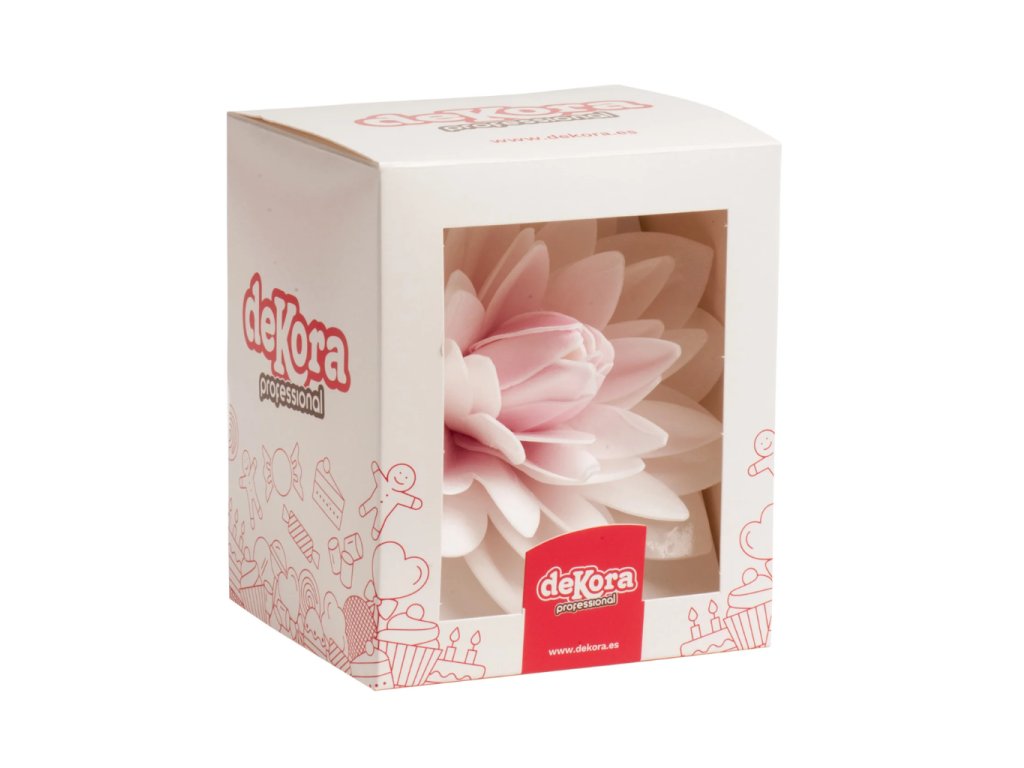Jedlá dekorace na dort, jiřina 12,5 cm Dekora je výrazný růžový květ z jedlého papíru, který během chvilky vytvoří elegantní zdobení dortu. Lehká konstrukce nezatěžuje korpus a díky přesnému tvaru působí dekor čistě i na jemných krémech.