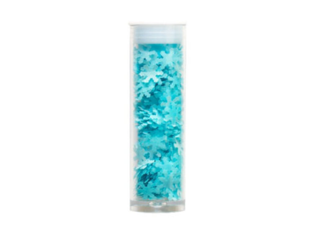 Jedlé dekorační vločky Decora, průměr cca 6 mm, balení 1 g, modrý „ledový“ efekt na dorty, cupcakes, sušenky i drinky, bez lepku.