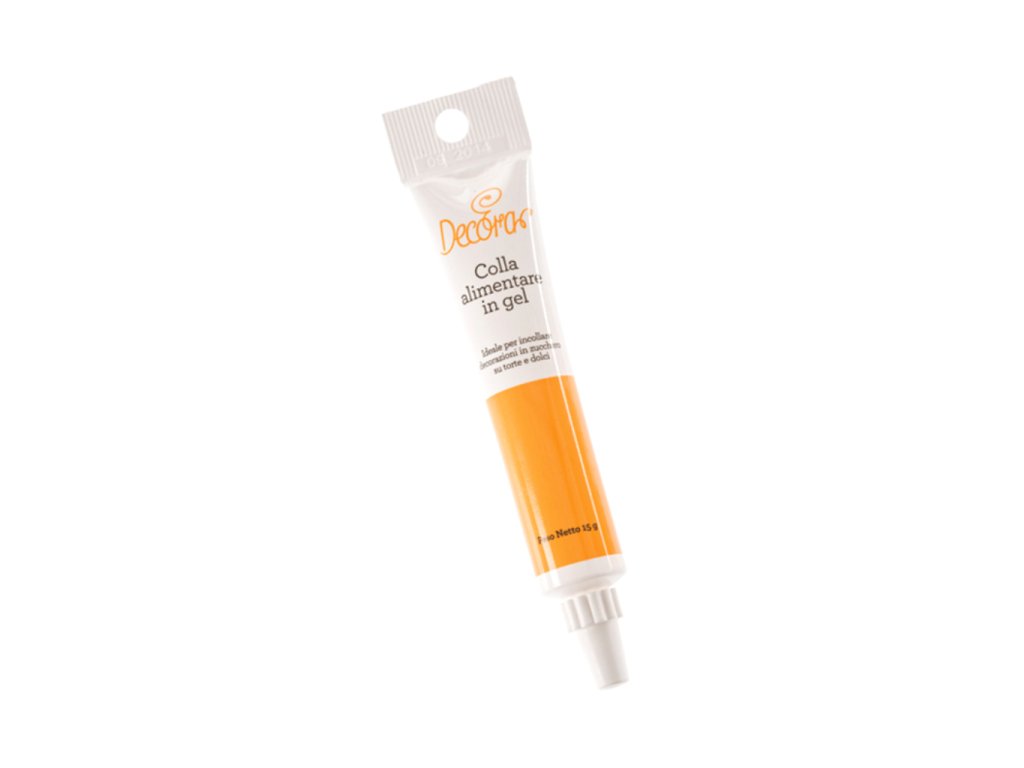 Jedlá potravinářská lepicí hmota v praktické tubě 15 g, hustá konzistence zajišťuje okamžité a dlouhodobé přilnutí, ideální pro cukrové dekorace.