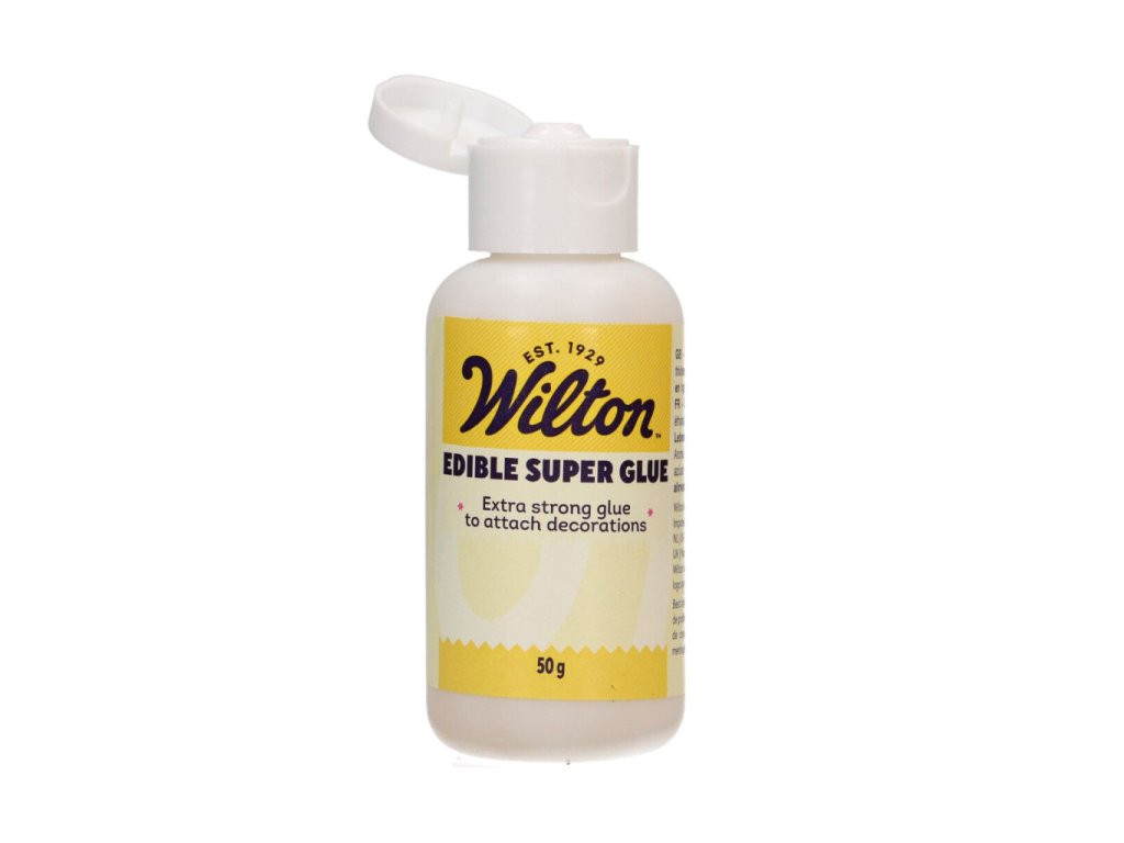 Jedlé super lepidlo Wilton 50 g zajistí extra silnou přilnavost cukrářských dekorací. Alkoholová receptura rychle schne, po zaschnutí je čirá a nenaruší texturu fondánu ani gumpasty – ideální pro figurky, květy, mašle i reliéfy.