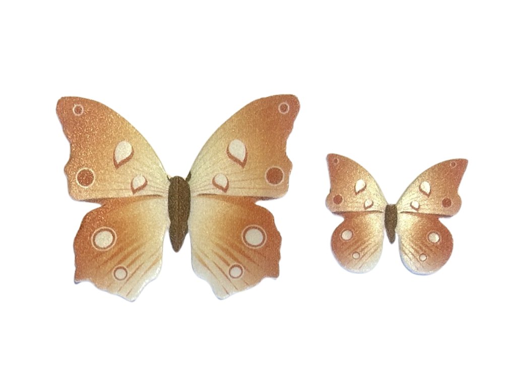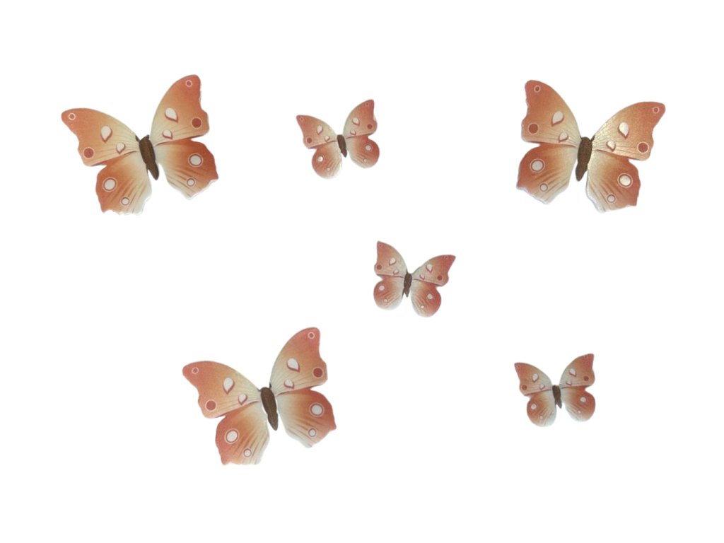 Motýlci z jedlého papíru – oranžová barva, balení po 6ks, rozměry 4 a 7 cm.