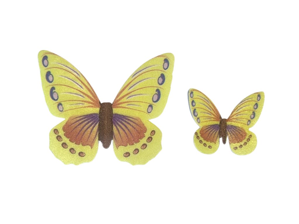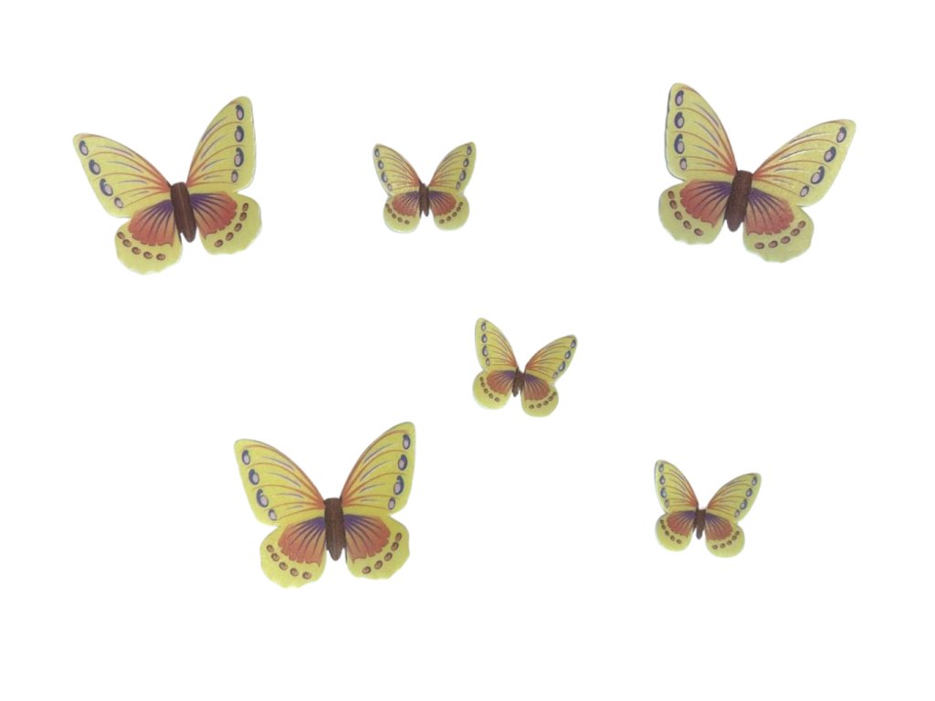 Motýlci z jedlého papíru – žlutooranžová barva, balení po 6ks, rozměry 4 a 7 cm.