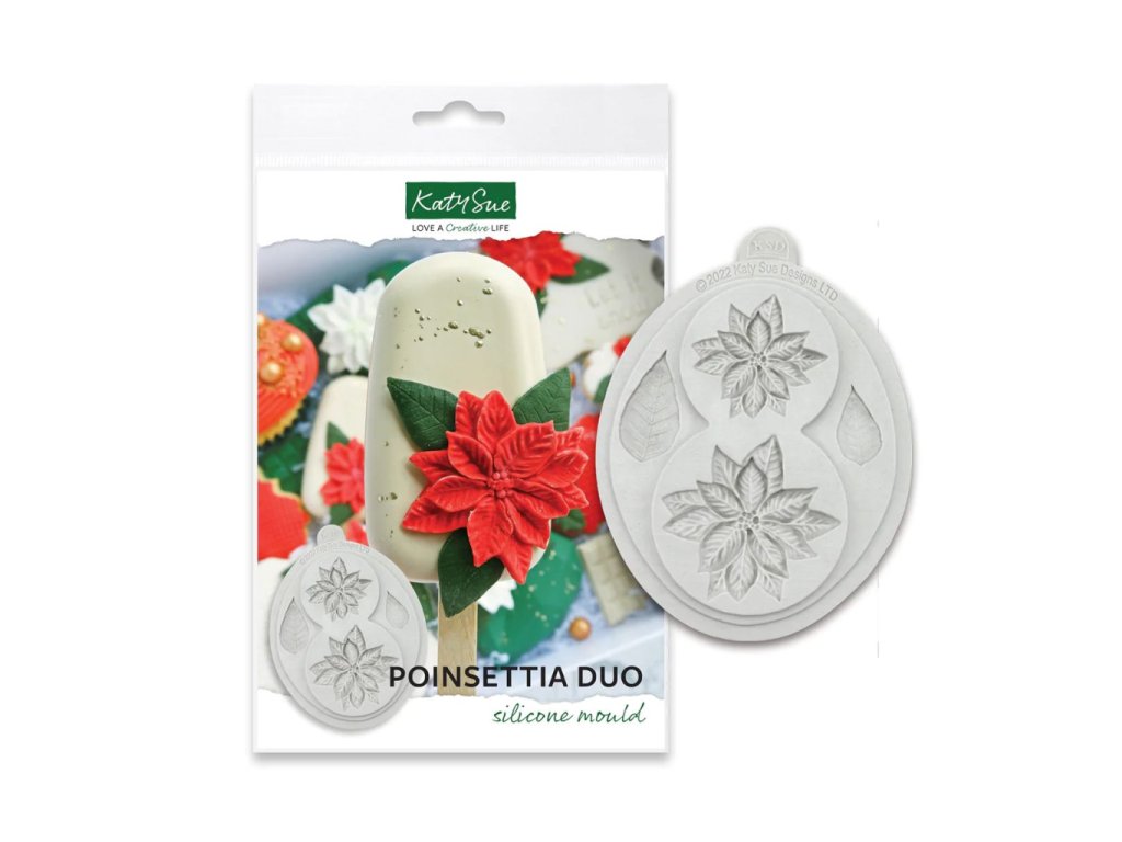 Detailní silikonová forma Katy Duo umožňuje snadno vytvořit realistické květy vánoční hvězdy ve dvou velikostech. Forma zachycuje jemnou strukturu okvětních lístků a dodá vašim dortům elegantní vánoční vzhled. Vyrobena z kvalitního potravinářského silikonu, který zajišťuje dokonalé tvary i snadné vyjmutí hotových dekorací.