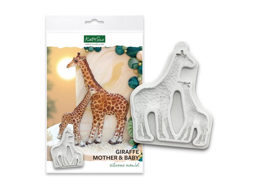 Vytvořte malou žirafí rodinku s touto silikonovou formou od Katy Sue. Ručně vyřezávaný design představuje matku a mládě žirafy. Ideální pro zdobení dortů, sušenek a všech druhů řemeslných projektů.