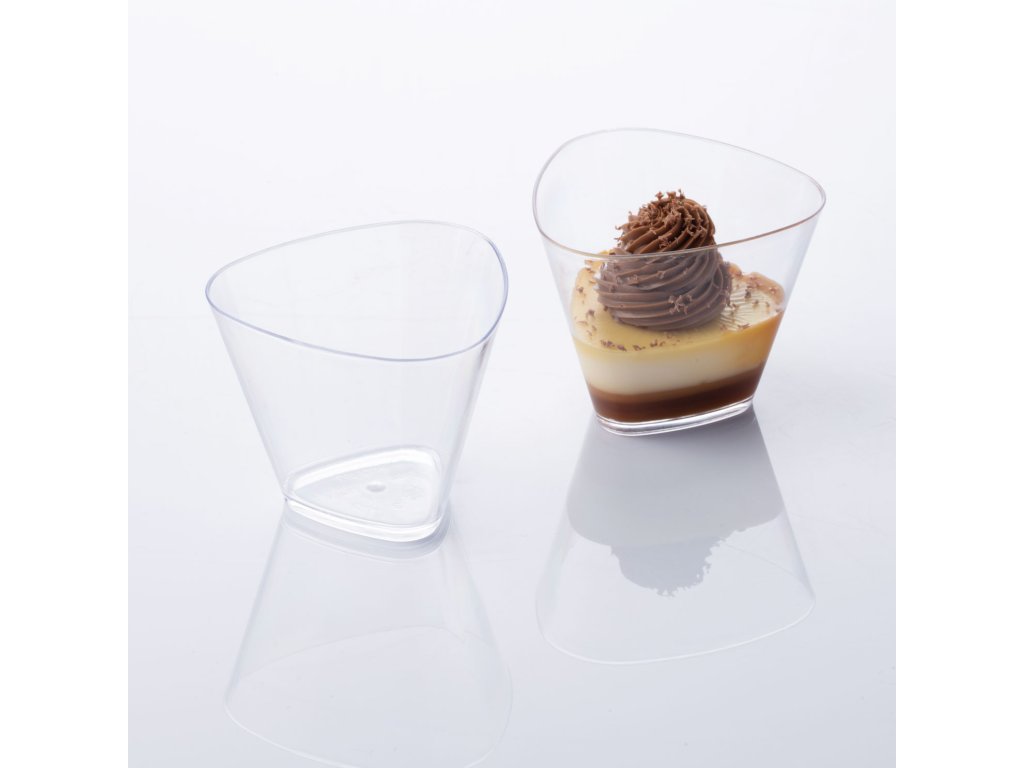 Tento plastový kelímek na dezerty vyniká nejen svým tvarem, ale i mimořádnou odolností a leskem. Je jako stvořený pro moderní vrstvené dezerty i zmrzlinové variace. Pohárek je vyroben z kvalitního plastu a vydrží až 50 mytí. Navíc odolá teplotám od -18 °C do +70 °C a je 100% recyklovatelný.