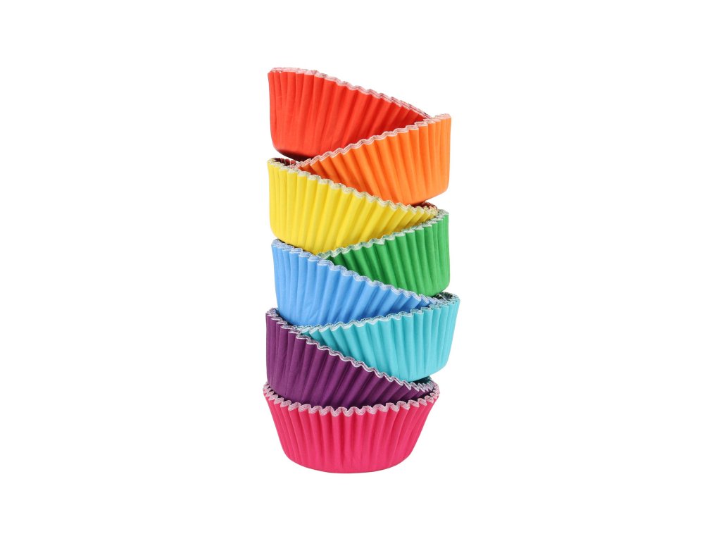 Papírové pekařské košíčky v duhových barvách pro jakoukoliv příležitost.