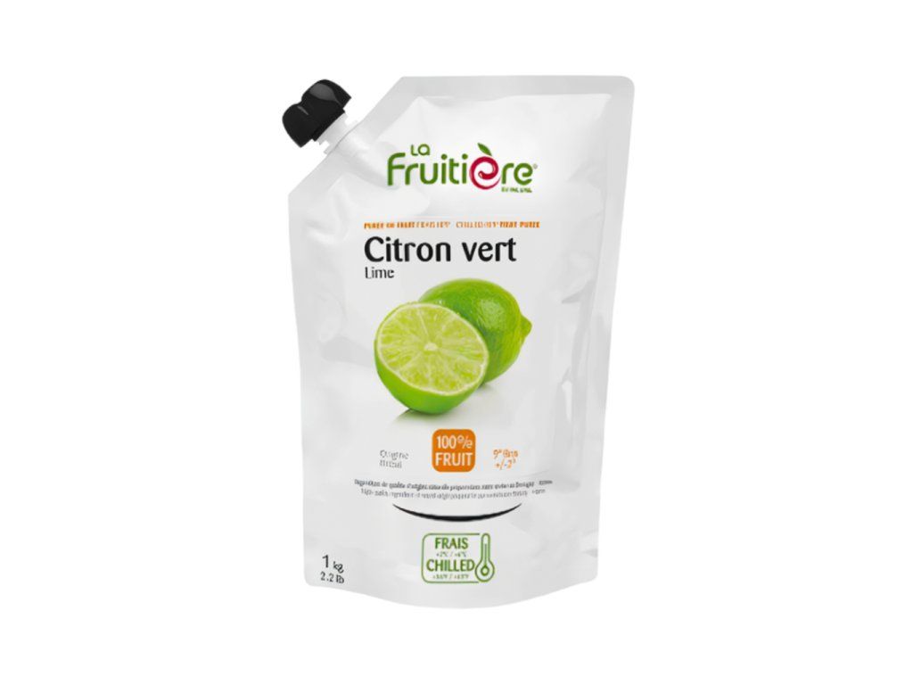 Limetková příchuť, 100% ovocné pyré, jemná konzistence, bez umělých aromat, barviv, konzervantů a přidaného cukru, balení 1 kg, vhodné pro cukrářství a gastronomii.