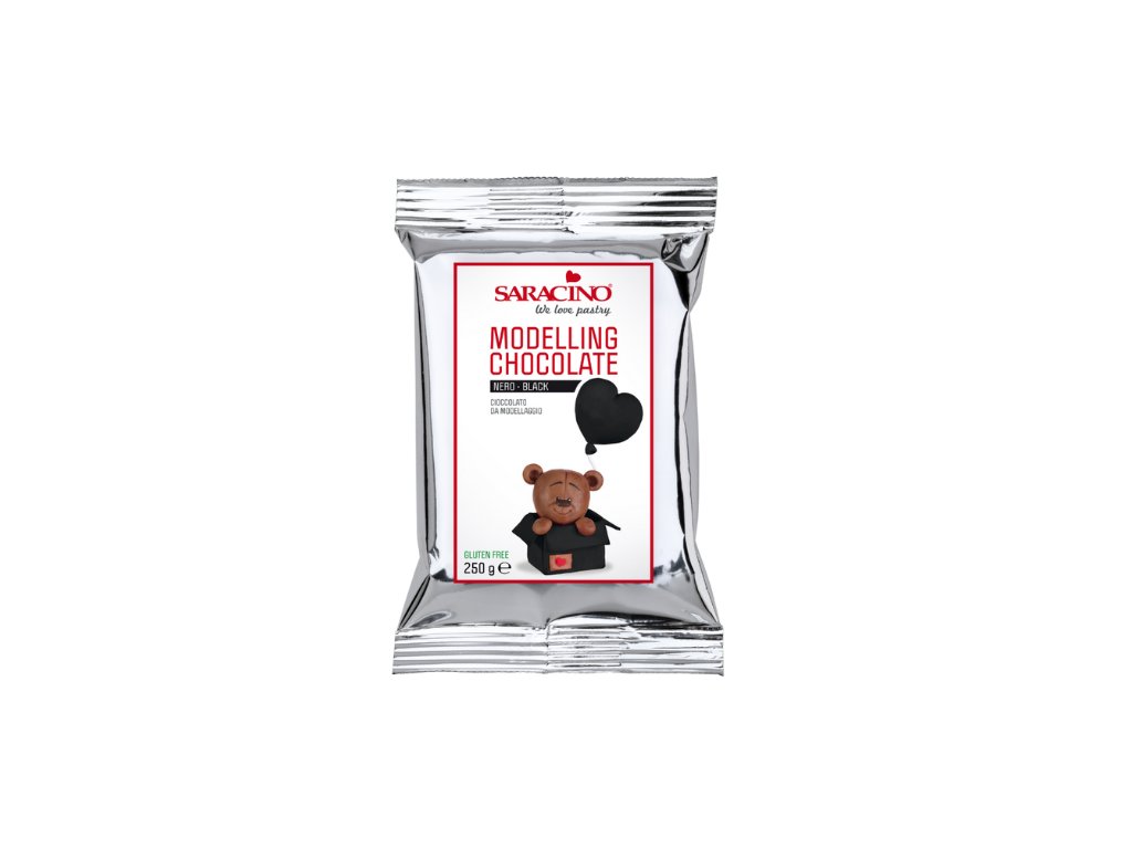 Profesionální modelovací čokoláda Saracino černá o hmotnosti 250 g je určena pro tvorbu dekorací, figurek, květin i potahování dortů. Díky své vynikající pružnosti a jemné konzistenci se snadno zpracovává a nelepí. Bílá barva je ideální pro barvení barvami na bázi tuku nebo pro jemné, elegantní dekorace z čokolády s přirozeným leskem a lahodnou chutí.