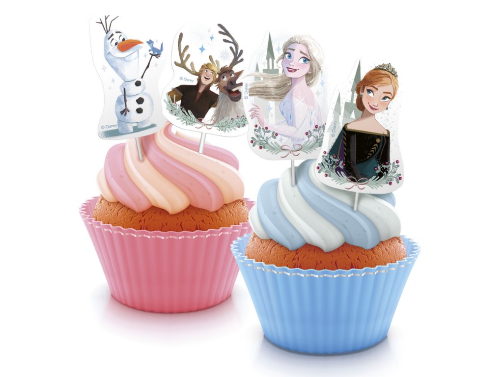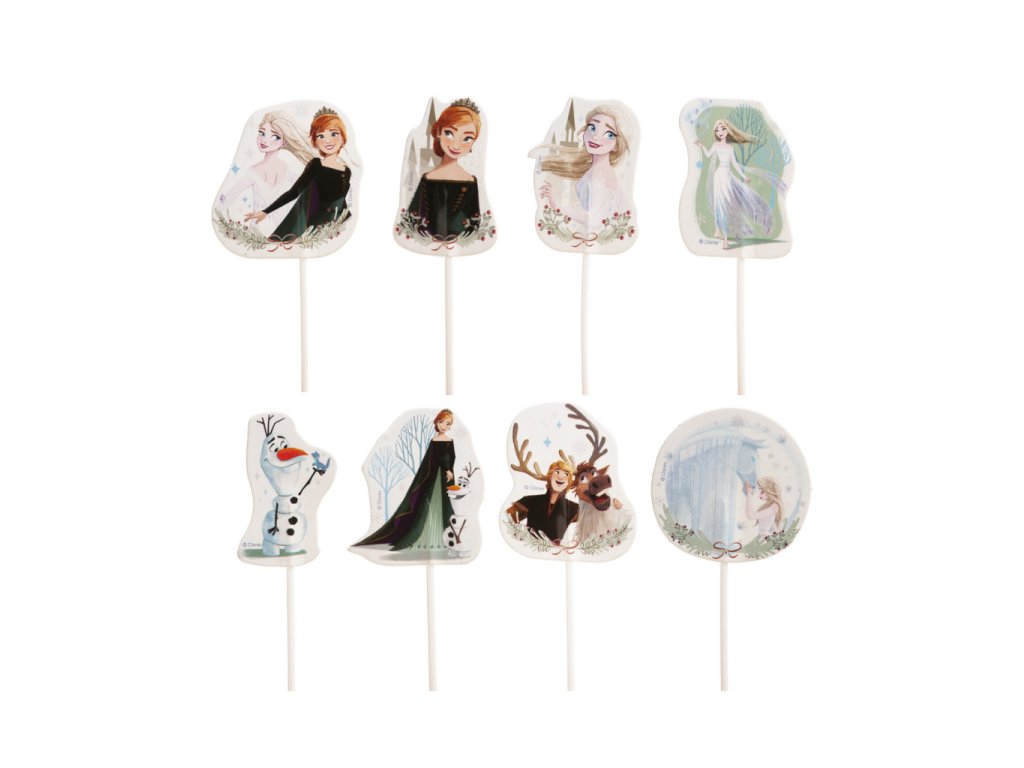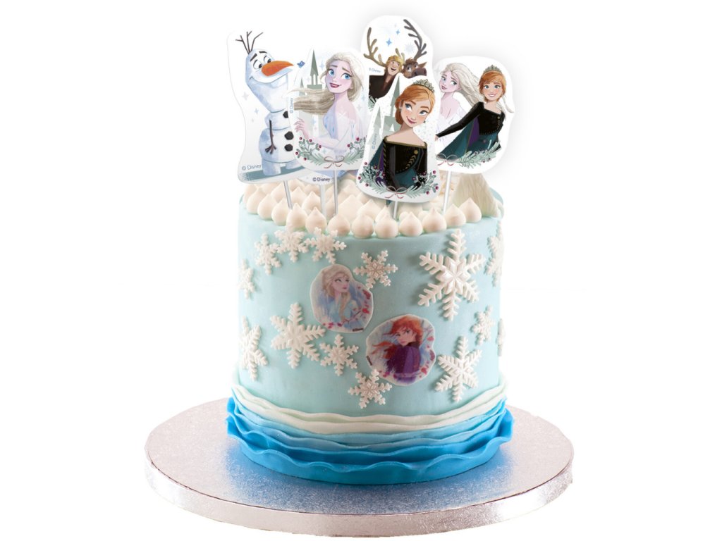 Papírové zápichy na dort Frozen ozdobí vaše dorty i cupcakes motivy oblíbených postav z pohádky Ledové království. Stačí je jednoduše zapíchnout do krému a rázem vytvoříte oslavu jako z pohádky, která potěší malé princezny i fanoušky Disney.