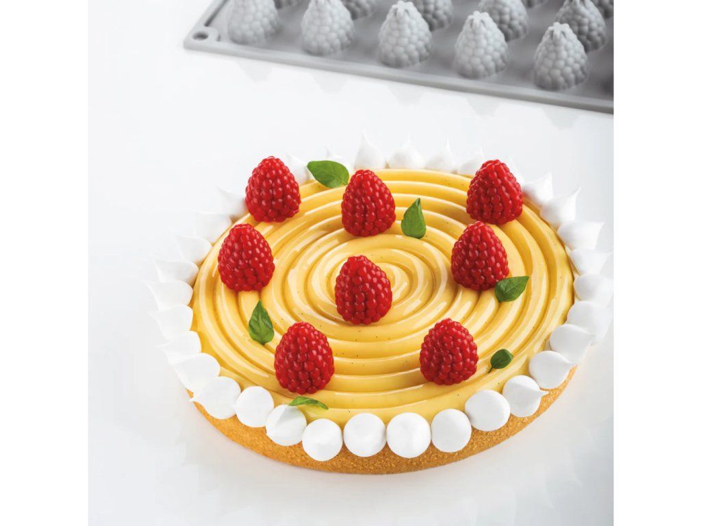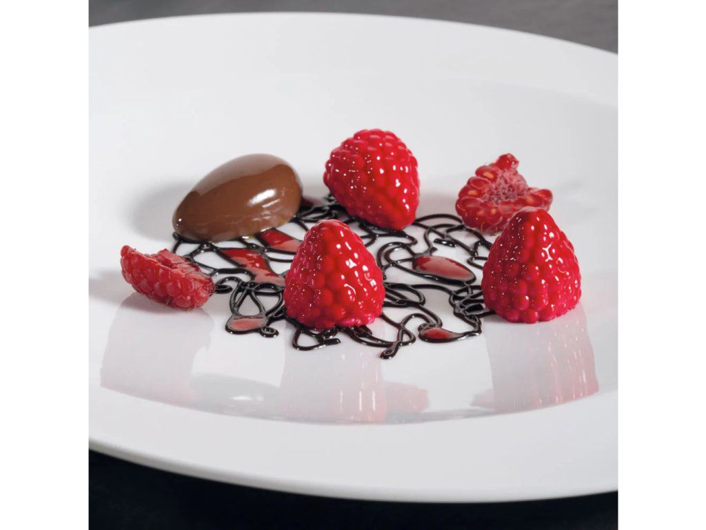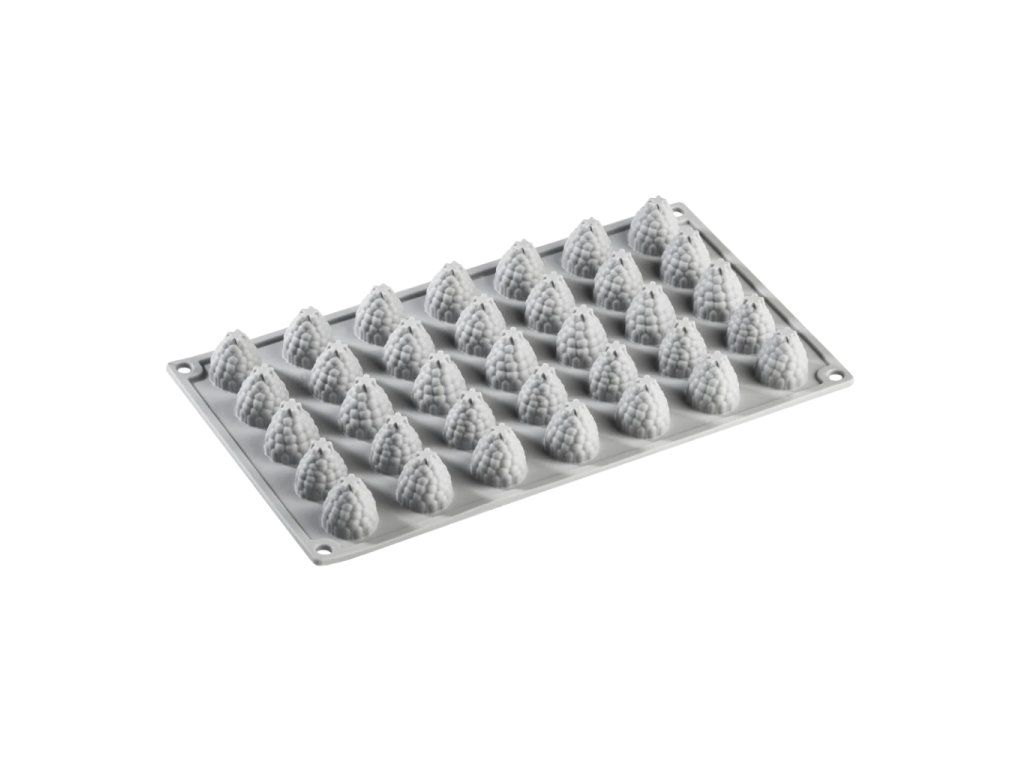 Tvar malina, 35 dutin, objem jedné dutiny 7 ml, průměr dutiny 24 mm, výška 27 mm, profesionální silikon, vhodné pro tvorbu monoporcí či čokoládových dekorací.