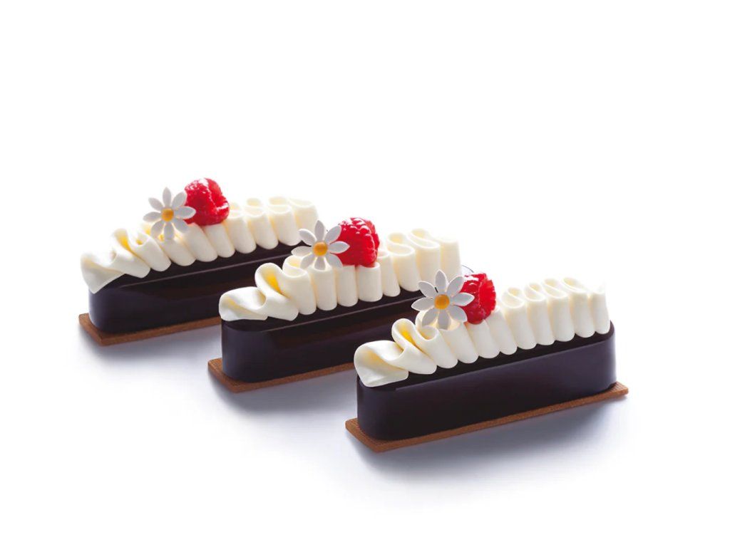 Silikonová forma na eclair od značky Pavoni vznikla ve spolupráci s renomovaným cukrářem Antoniem Bachourem a je navržena pro tvorbu moderních monodezertů. Díky kvalitnímu silikonu a přesnému zpracování umožňuje opakovatelně dosahovat profesionálních výsledků.