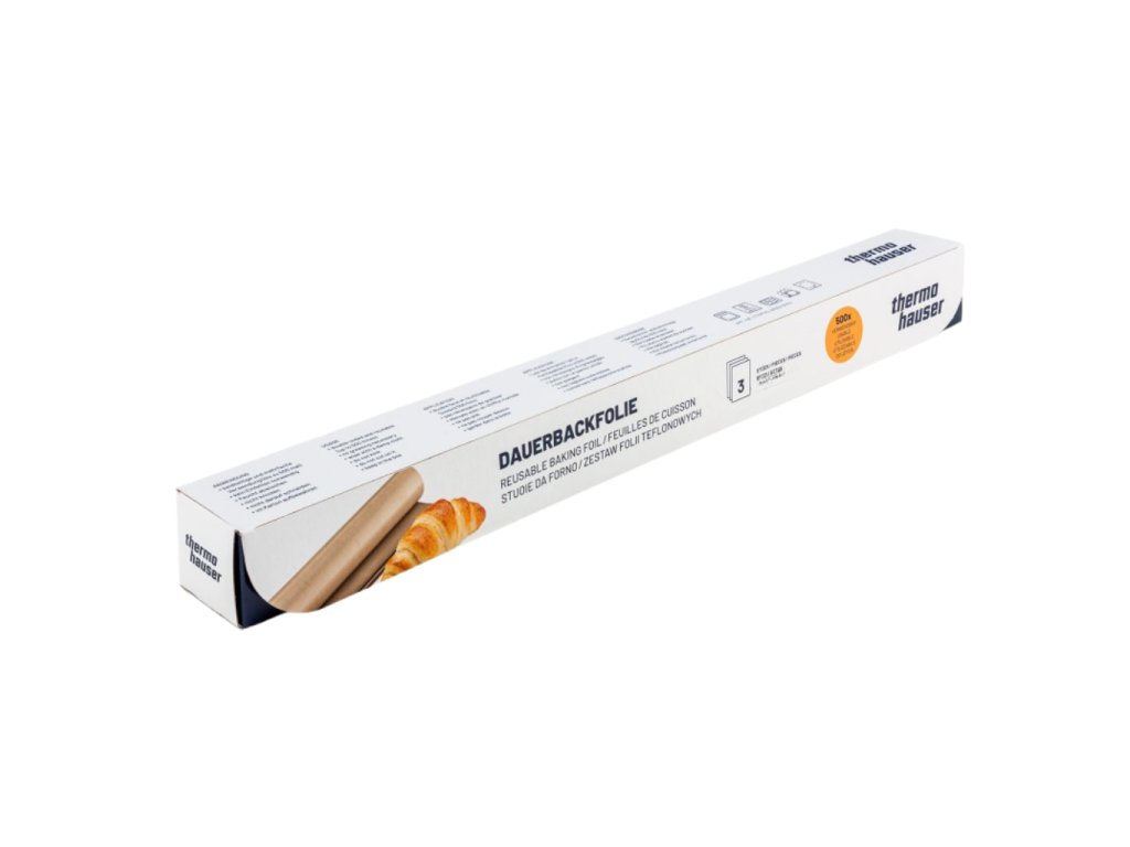 Stačí ji položit přímo na plech a začít péct – od křupavých housek, přes piškotové korpusy až sušenky. Jen pozor – fólii nestříhejte, jinak by se narušila její vlákna.