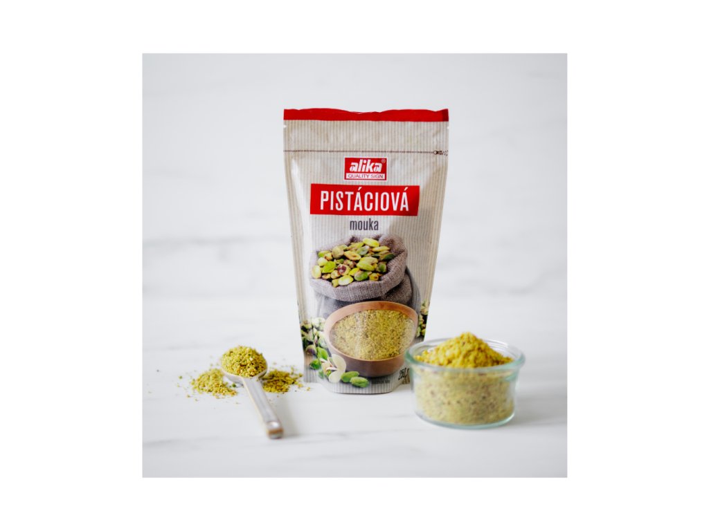 Vysoce kvalitní nepražená pistáciová mouka 250 g ze 100 % pistácií. Jemná textura, přirozená chuť i barva, ideální do těst, krémů, makronek a dezertů.