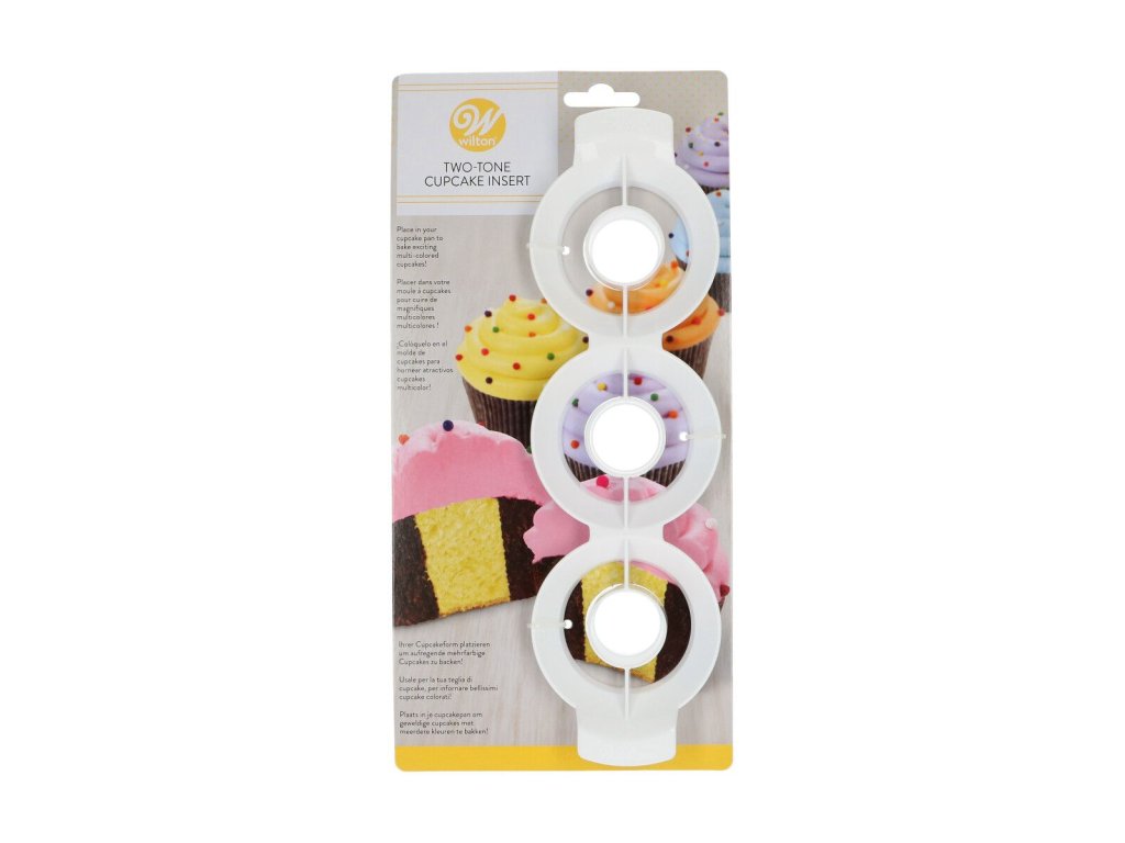 Upečte si veselé dvoubarevné cupcakes nebo muffiny s touto šikovnou vložkou od Wiltonu. S vložkou snadno naplníte košíčky dvěma barvami těsta.