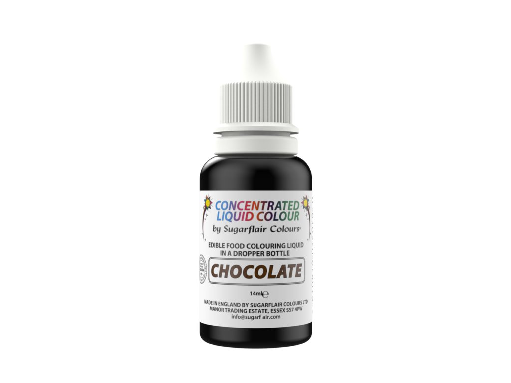 Hnědá barva, objem 14 ml, tekutá, jedlá, kosher certifikát, pro barvení krémů, cukrářských hmot a kresbu.